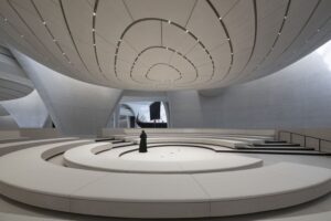 Cada una de las galerías con forma de cápsula está diseñada para reflejar un tema específico, mientras que los espacios nodales que las conectan proporcionan información contextual que las une. Los visitantes pueden elegir su propio recorrido por las diferentes galerías y subir al piso superior por una escalera espiral escultórica o por ascensores. En la planta baja, también hay dos galerías permanentes más cerca de las entradas del museo, así como un espacio para exposiciones temporales, un restaurante de alta cocina y una cafetería.