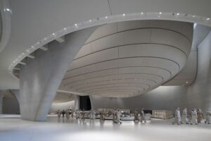 «El Museo Nacional Zayed narra la historia de la creación de los Emiratos por parte del jeque Zayed y las múltiples facetas de su legado, incluida su visión de convertir el desierto en un oasis. El edificio en sí mismo es una expresión de sostenibilidad, con cinco alas aerodinámicas que forman parte integral del sistema medioambiental, actuando como chimeneas térmicas y atrayendo aire fresco a través de los espacios públicos. También simbolizan el amor del jeque Zayed por el deporte tradicional de la cetrería y se han convertido en puntos de referencia en el horizonte de la ciudad». Norman Foster | Fundador y Presidente Ejecutivo, Foster + Partners.