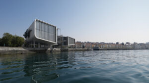 En el volumen este se ubica un auditorio en voladizo sobre el mar, concebido como una caja escénica flexible capaz de albergar conciertos, conferencias, festivales y proyecciones. También allí se desarrolla el área educativa, con espacios versátiles destinados a talleres y actividades para todas las edades.