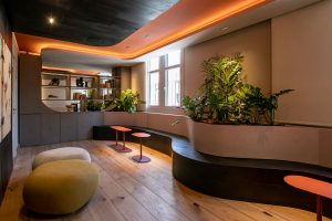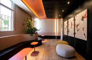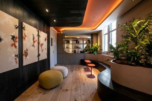 El foyer como espacio de transición a una sala mayor, es utilizada frecuentemente como lugar de encuentro y de reuniones. Las actividades que se pueden desarrollar en el mismo son tan variadas como los usos de los espacios donde los podemos encontrar. La propuesta desarrollada por sus creadoras parte de una experiencia que invita a viajar a un universo artístico, singular y atemporal, donde los materiales nobles, las plantas, las obras de arte y los detalles artesanales se destacan acompañados de una cálida iluminación ambiental.