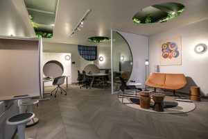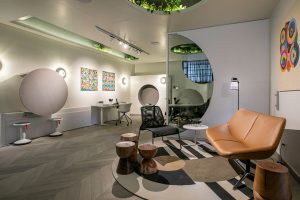 Grupo A2 presentó este año en la muestra de Casa FOA Retiro un espacio de oficina enriquecido con equipamiento corporativo y de coworking de la mano de las profesionales Guadalupe Diez Estudio y Im Estudio (Muzzio) quieres crearon un ambiente de trabajo funcional y flexible.