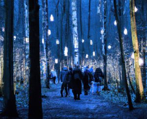La muestra articulará instalaciones artísticas lumínicas, videos mappings, figuras gigantescas, proyecciones, instalaciones de luces LED, neones e interactivas que irán dando forma a las 17 postas inmersivas, visuales como auditivas.