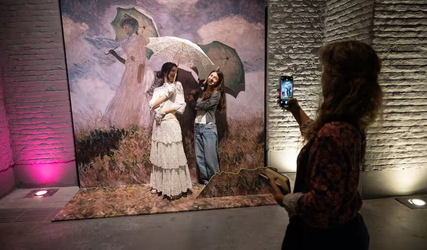 Pero la experiencia va más allá de la pura contemplación. El recorrido incluye decorados inspirados en los cuadros, espacios preparados para fotografías, cascos de realidad virtual, réplicas de obras emblemáticas e instalaciones interactivas que invitan al público a involucrarse activamente con el arte. Además, hay mesas de dibujo y estaciones explicativas que permiten explorar tanto la técnica como la sensibilidad que definieron al padre del impresionismo.