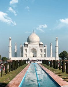 Construido entre 1631 y 1653 en la ciudad de Agra, India, el Taj Mahal tardó más de 20 años en construirse por completo. Su arquitectura está basada en los estilos persa, islámico, indio y turco. Se estima que su edificación necesitó de 20.000 hombres para llevarse a cabo.