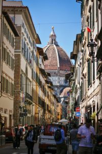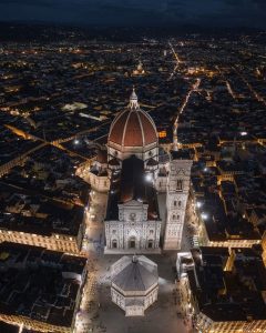 Por encima de la silueta de la ciudad se asoma la Catedral de Santa María del Fiore con una impresionante cúpula de Brunelleschi que destaca por encima de la silueta de la ciudad. Además, dentro de ella se pueden ver las escenas pintadas del juicio final y disfrutar las mejores vistas del centro de Florencia. Otro espacio donde hay miradores del centro de la ciudad es en el campanario de la catedral, el Campanile de Giotto, uno de los más bonitos de Italia.