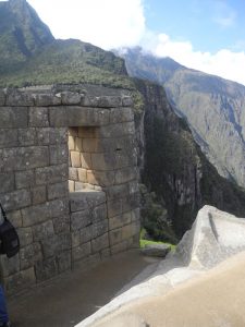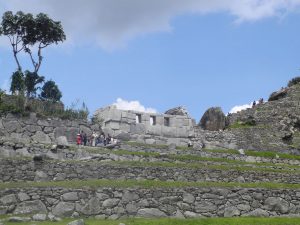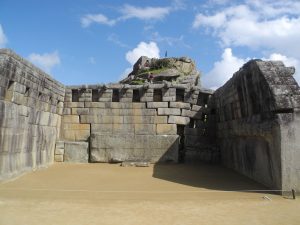Situado en el punto más alto de la ciudad, al norte del conjunto de edificaciones que rodean Plaza Sagrada, el Templo Principal o Templo Mayor de Machu Picchu se emplaza allí por ser una de las dos edificaciones con mayor significado espiritual para la ciudadela. Mientras conversa con otro par, el viajero atraviesa la Plaza Sagrada, designada centro político-social del sector urbano, que se encuentra rodeada por el Templo Principal, Intihuatana y el Templo de las Tres Ventanas.